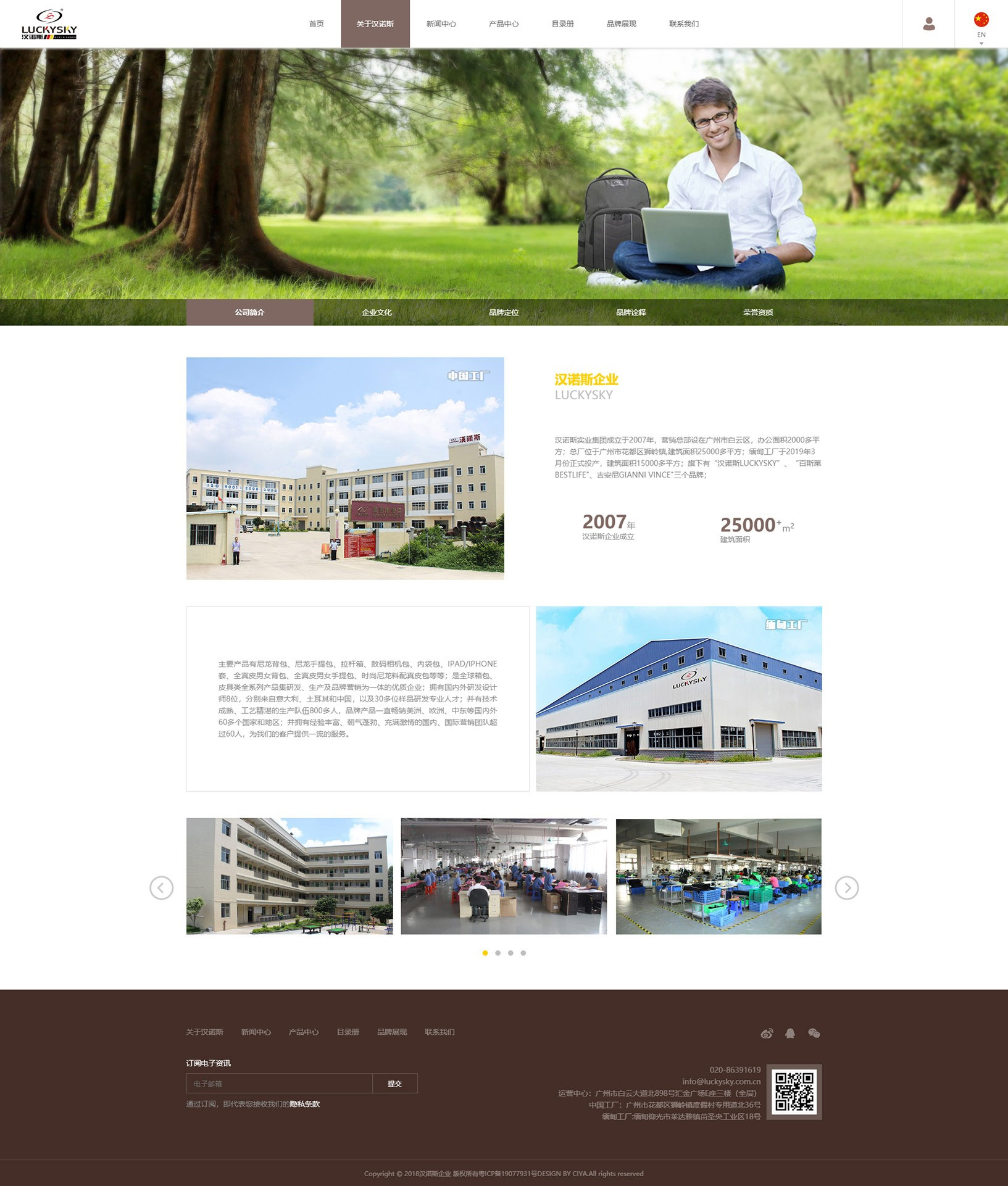 主要產(chǎn)品有尼龍背包、尼龍手提包、拉桿箱、數(shù)碼相機包、內(nèi)袋包、IPAD/IPHONE套、全真皮男女背包、全真皮男女手提包、時尚尼龍料配真皮包等等;是全球箱包、皮具類全系列產(chǎn)品集研發(fā)、生產(chǎn)及品牌營銷為一體的優(yōu)質(zhì)企業(yè)。
