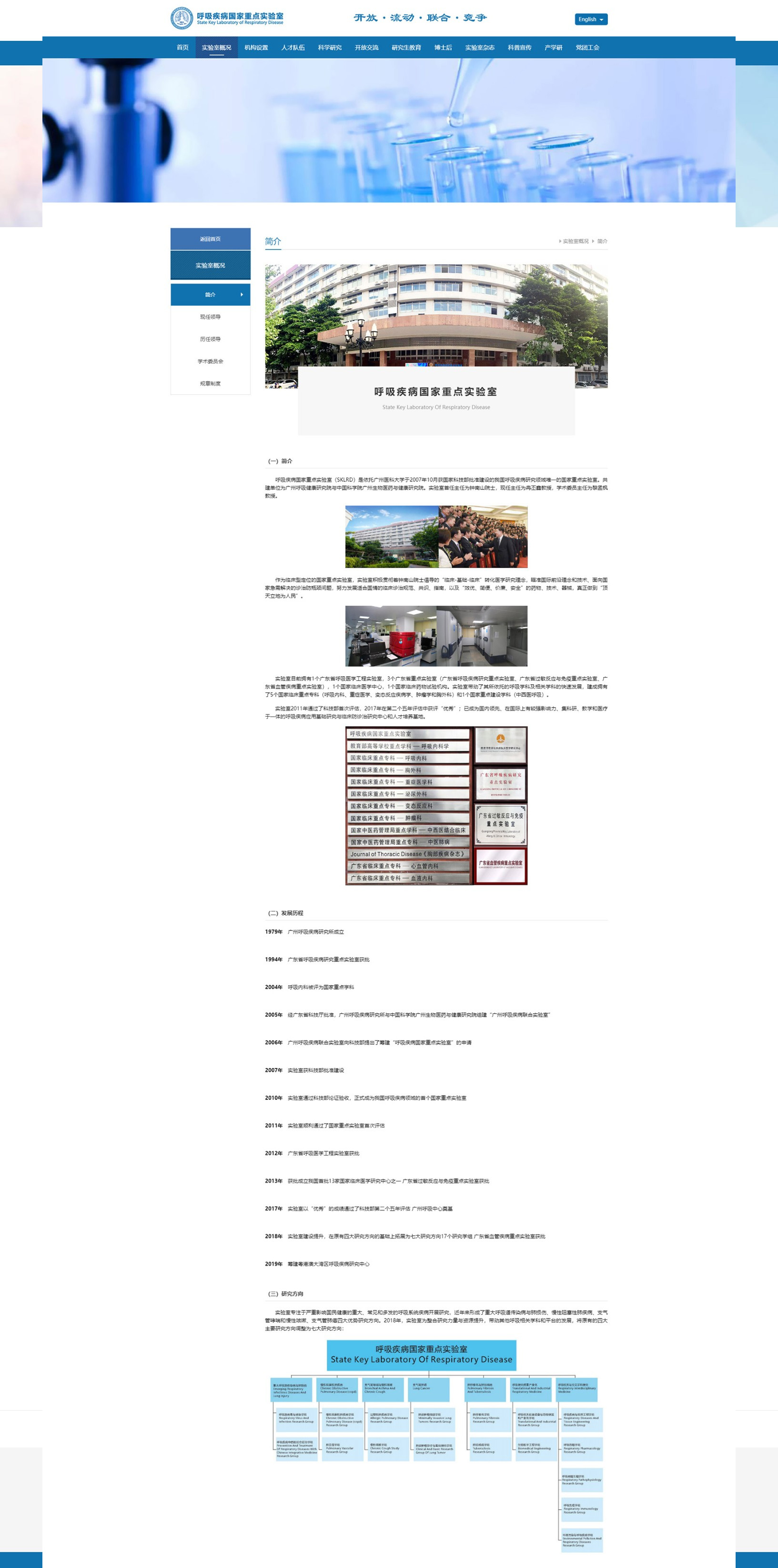 呼吸疾病國家重點(diǎn)實(shí)驗(yàn)室(SKLRD)是依托廣州醫(yī)科大學(xué)于2007年10月獲國家科技部批準(zhǔn)建設(shè)的我國呼吸疾病研究領(lǐng)域唯一的國家重點(diǎn)實(shí)驗(yàn)室。共建單位為廣州呼吸健康研究院與中國科學(xué)院廣州生物醫(yī)藥與健康研究院,實(shí)驗(yàn)室首任主任為鐘南山院士。
