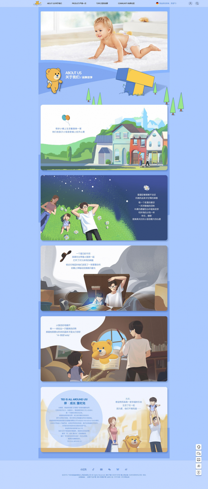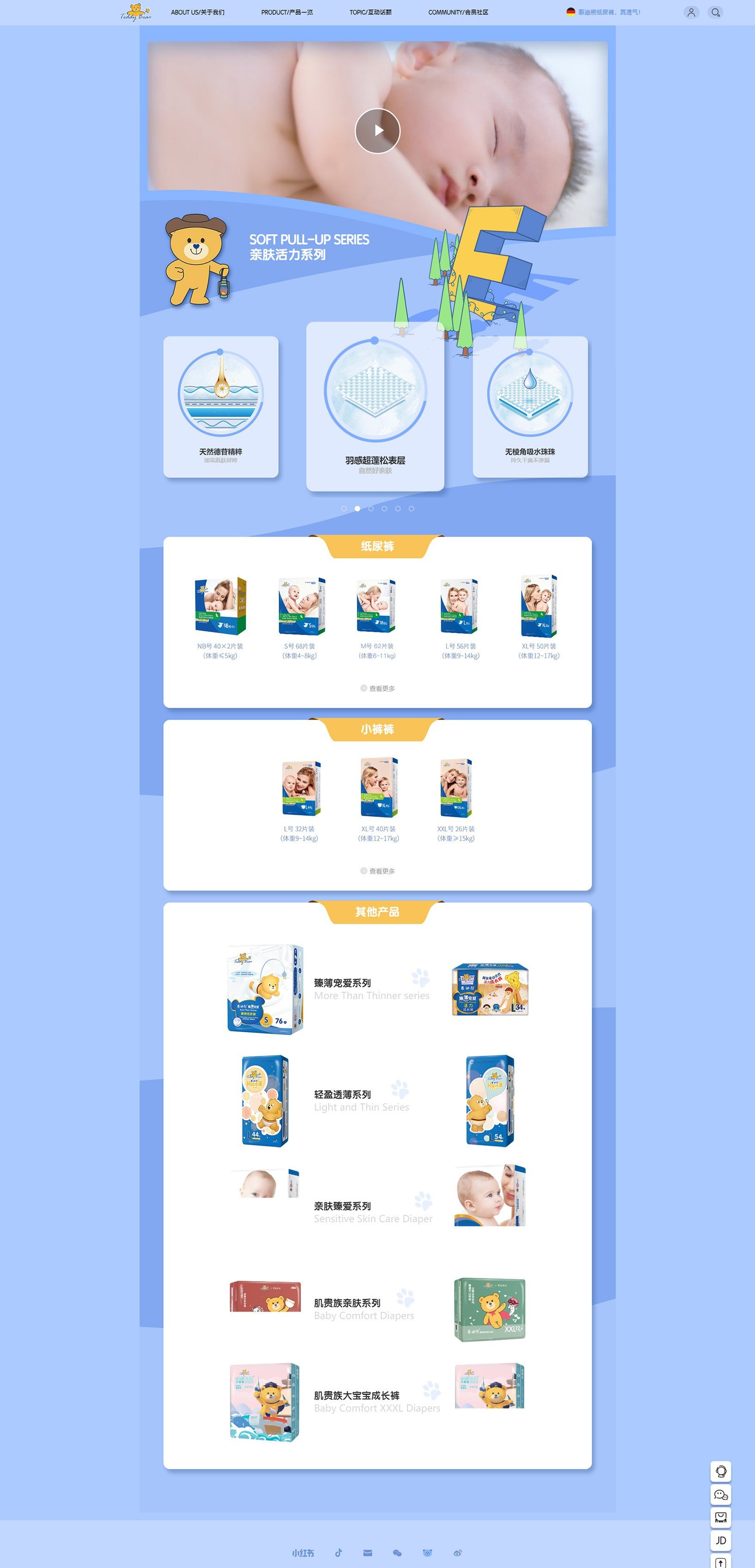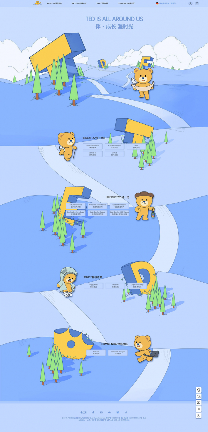 泰迪熊深研紙尿褲行業(yè)十年,旨在為萬千家庭提供薄透軟、舒適安全的紙尿褲,倡導(dǎo)“伴·成長漫時光”的品牌理念,履行“伴全球?qū)殞毧鞓烦砷L”的企業(yè)使命,賦愛寶寶健康成長。