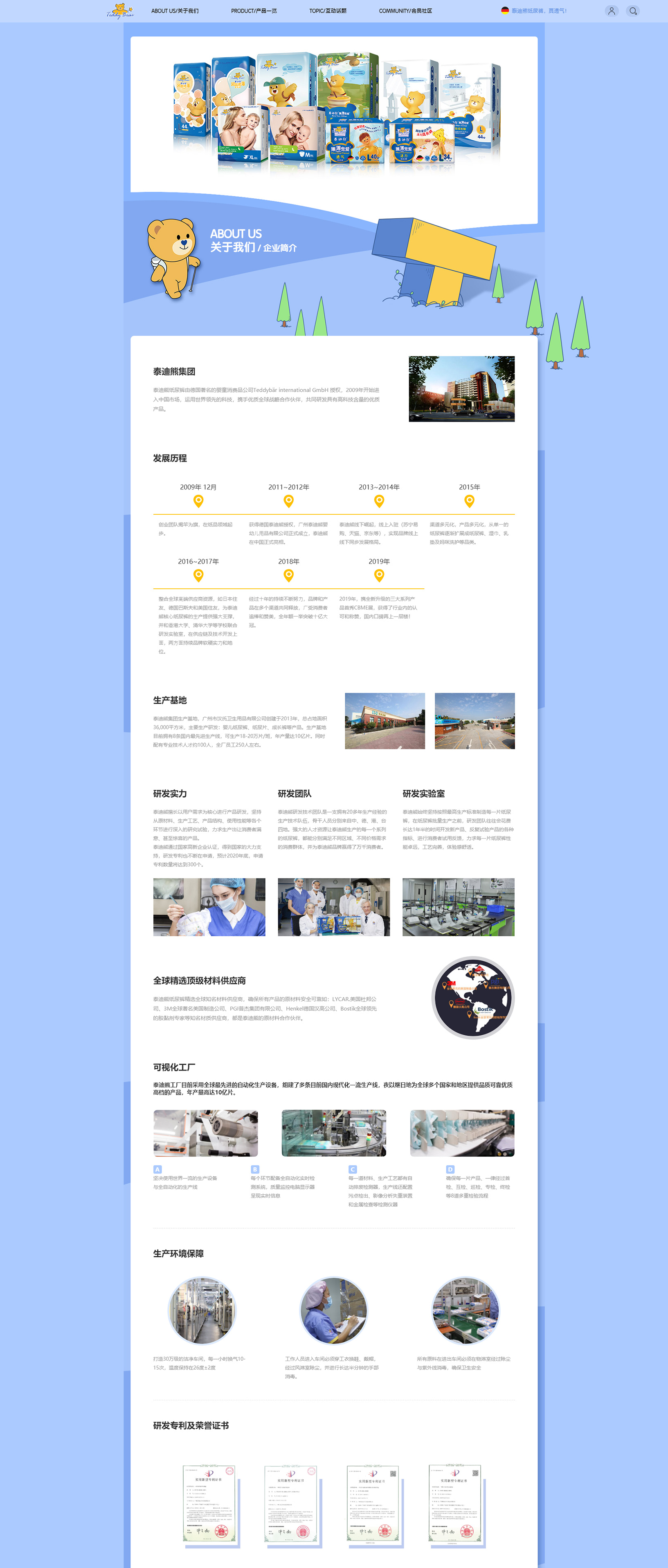 泰迪熊紙尿褲由德國著名的嬰童消費品公司Teddybar international GmbH授權(quán),2009年開始進(jìn)入中國市場,運用世界領(lǐng)先的科技,攜手全球戰(zhàn)略合作伙伴,共同研發(fā)具有高科技含量的優(yōu)質(zhì)產(chǎn)品。